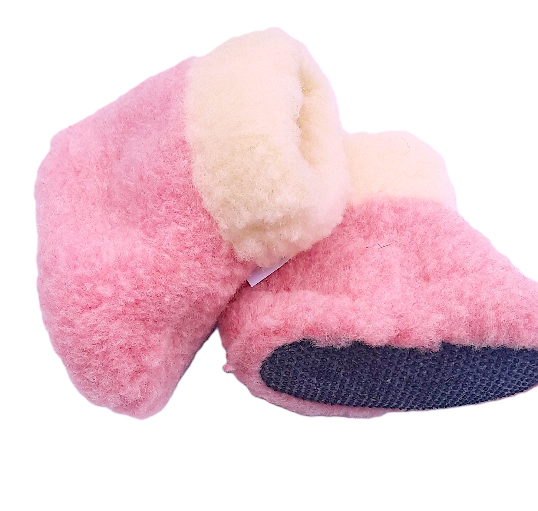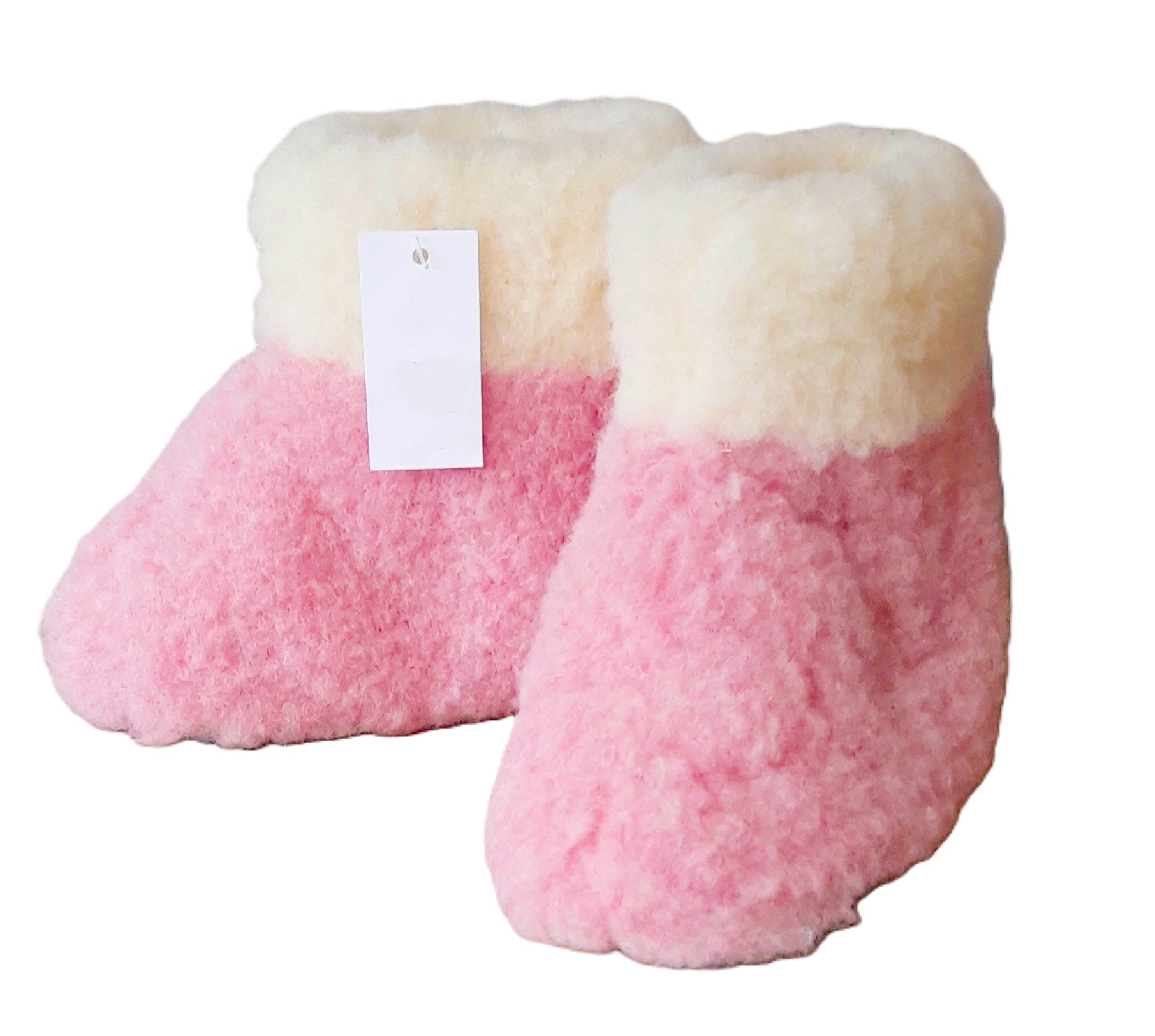 WYSOKIE dziecięce bamboszki wełniane z białym kołnierzem